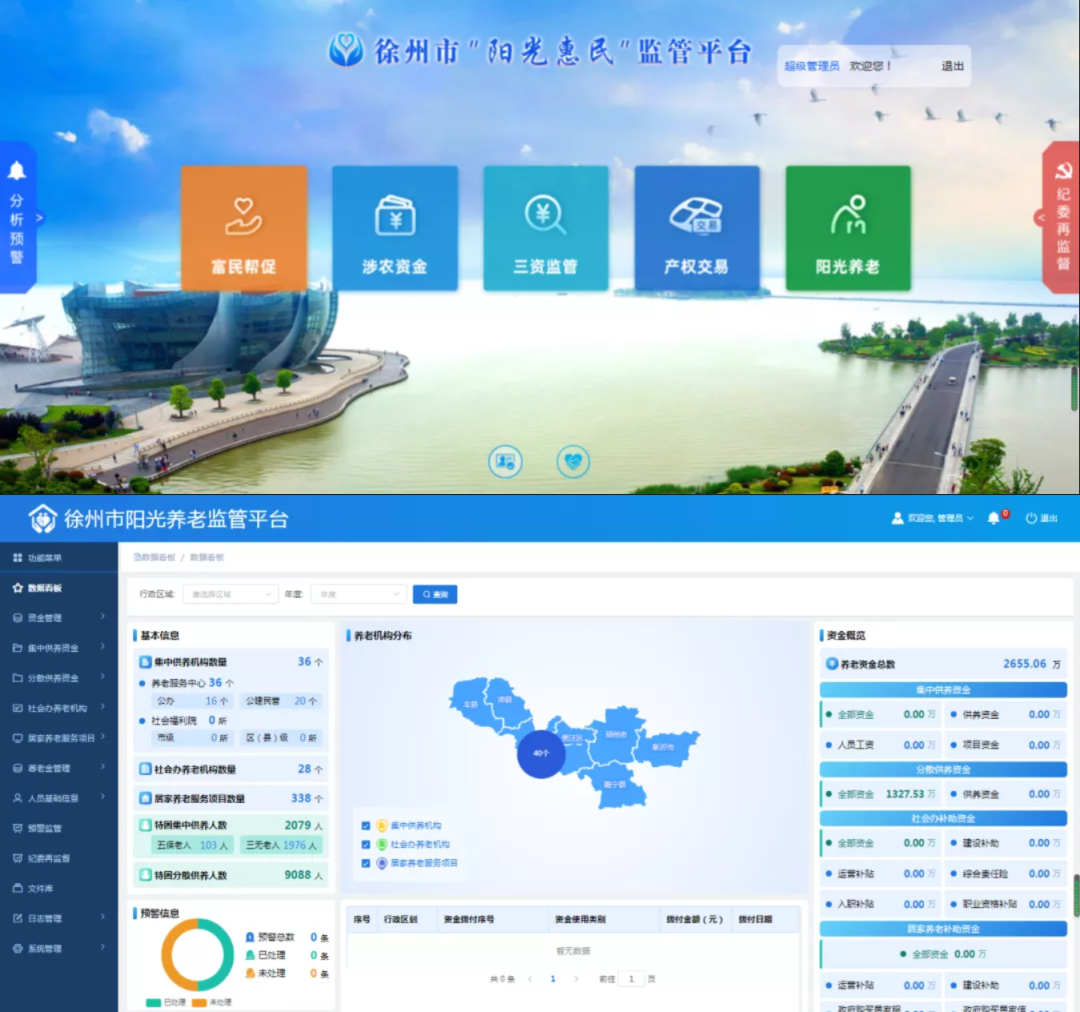 为持续深化农村敬老院资金管理问题专项治理,市纪委监委督促市民政局充分运用信息化技术积极探索“数据治理”新路径。在此背景下,神州信息创新建设徐州市阳光养老资金监管平台,实现对集中供养资金、分散供养资金、社会办养老机构补贴、居家养老服务项目补助和高龄老人尊老金等5条养老资金线5亿余元资金监管全覆盖。